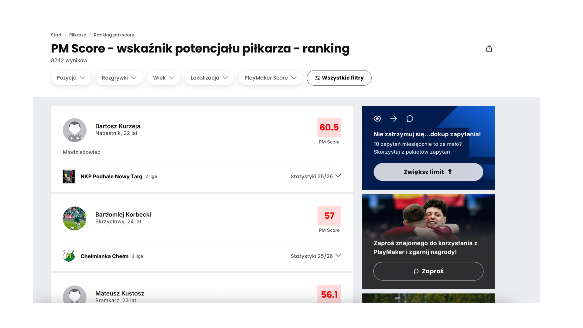 Pokażemy do jakiego poziomu/ligi pasuje Twój PM Score?